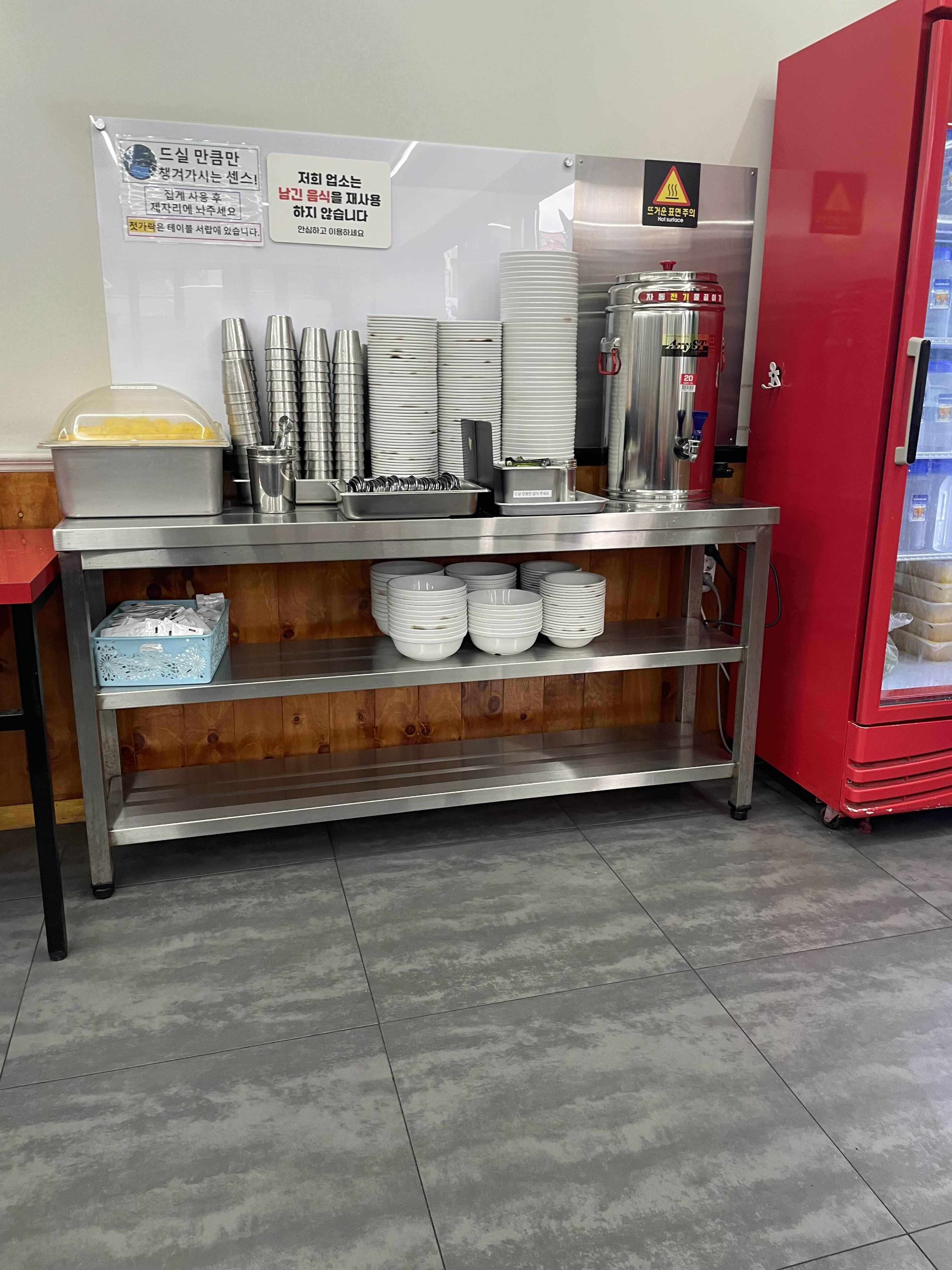 국물과 단무지, 숫가락은 셀프로 가져와 드세요